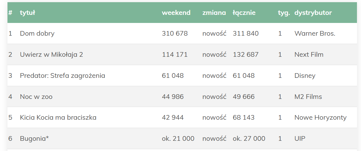 Są już wyniki. Uciekinier 19 tys. https://www.sfp.org.pl/box_office?b=731