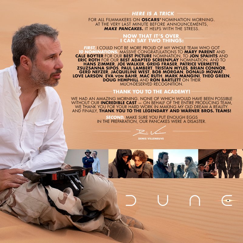 Cytat z Kuba data 16 stycznia, 2022, 21:18Techniczna ciekawostka, podobno Denis ma odświeżyć ekipę artystyczną i nowym człowiekiem odpowiedzialnym za projekty wnętrz i lokacji będzie Shane Vieau który dość mocno odchodzi od stylu preferowanego przez większość drużyny Denisa bo do tej pory pracował przy filmach Del Toro jak Shape of Water, Crimson Peak, Nightmare Alley, ale także przy Mortal Engines, IT 2 czy Ewolucji planety małp.