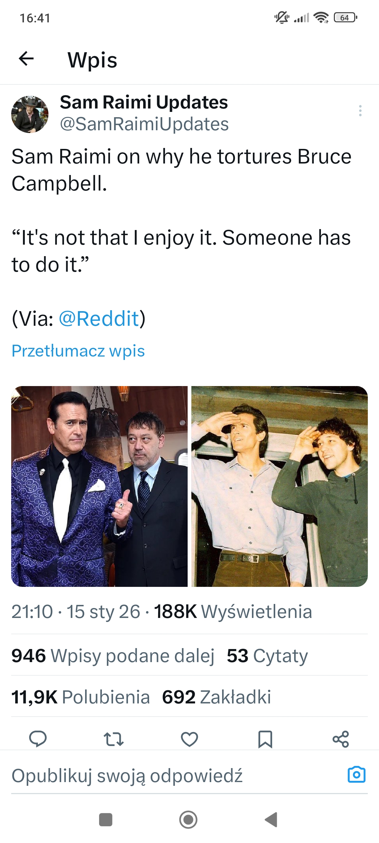 Cytat z Szaman data 3 stycznia, 2026, 23:52Także już się nie odzywam 🙂 Nie mogłem się nadziwić, bo myślałem, że kręcenie filmu jest niezwykle pracochłonnym zajęciem.
