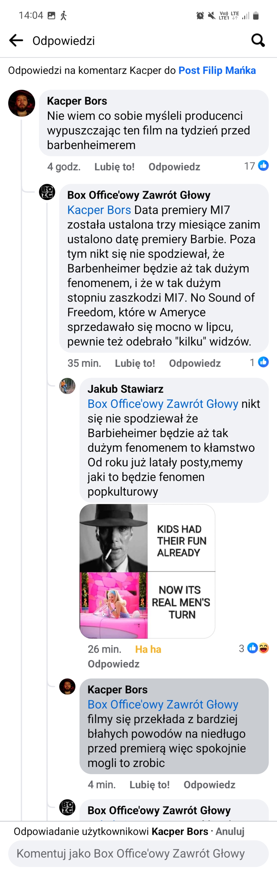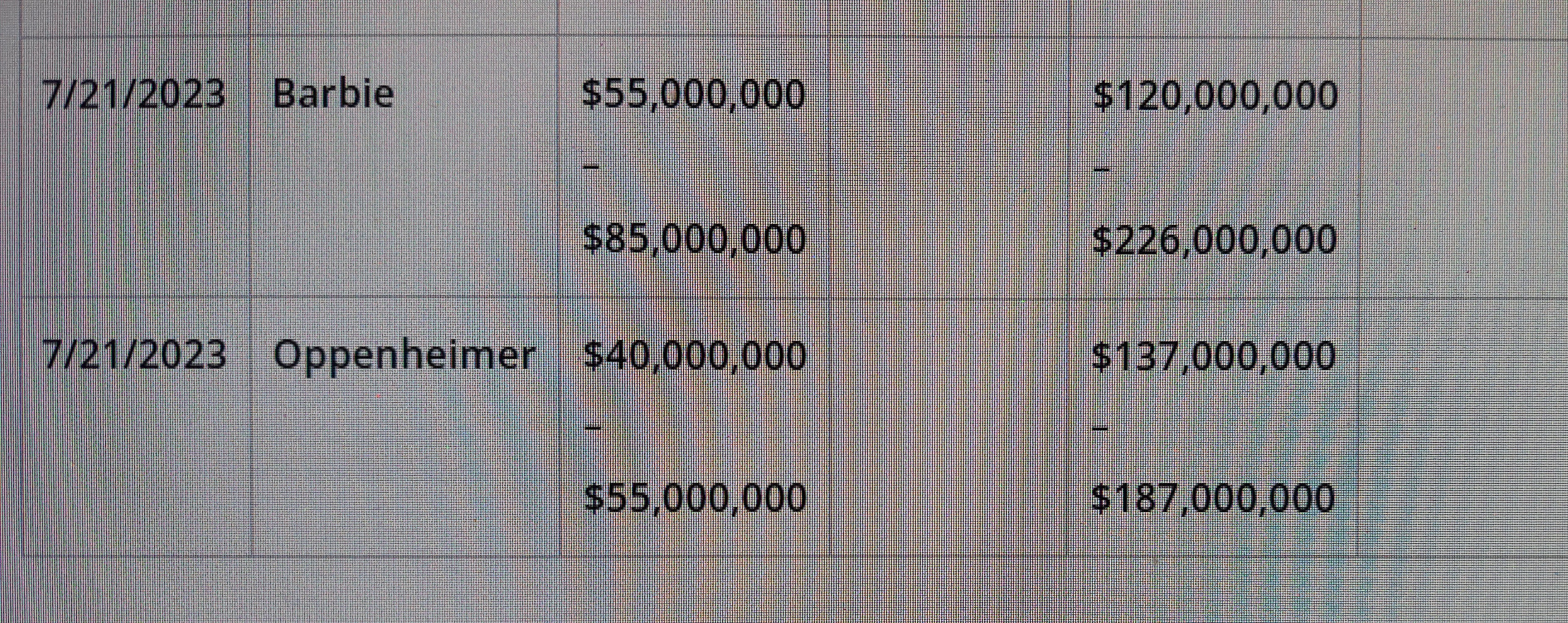Cytat z Marek Pilarski data 24 października, 2023, 13:28A kto to docenił? Albo przewdział, że Barbenheimer zarobi prawie $2,5 mld?