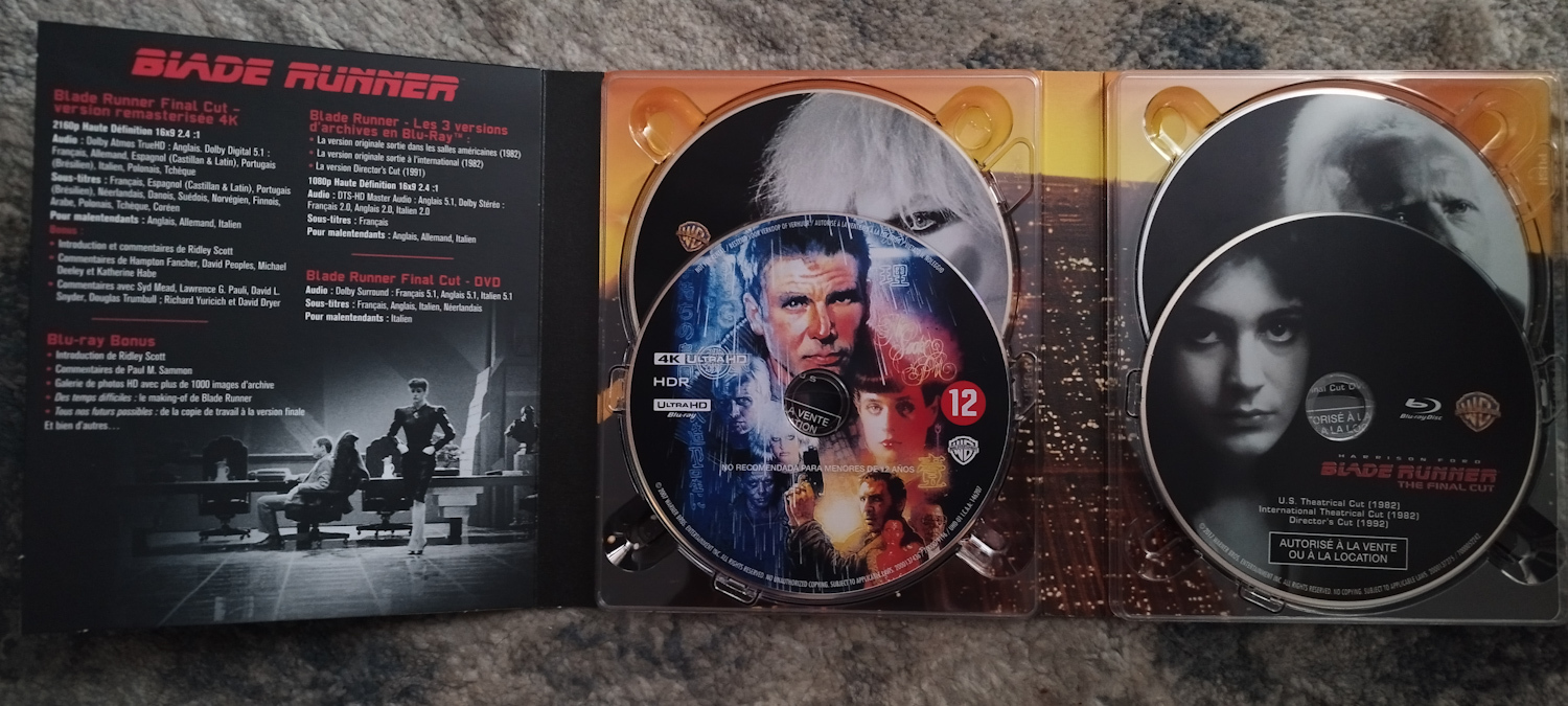 Przy okazji jakimś cudem dopiero teraz odkryłem, że w poniższym wydaniu które kupiłem 7 (!) lat temu jest płyta dodatkowa na której oprócz 3,5-godzinnego dokumentu Dangerous Days o powstawaniu BR jest jeszcze wersja workprint filmu oraz ponad 8 godzin innych dodatków, w tym prawie godzina scen usuniętych / alternatywnych. Cudo! Wspomniany dokument jest genialny, szczerze i bez ogródek mówi o tym jak trudny był proces realizacji filmu, o frustracjach ignorowanego przez reżysera Harrisona Forda, ciągłych opóźnieniach i przekraczaniu budżetu. Wiedzieliście, że za jeden z budynków w ujęciu miasta posłużył stojący pionowo, nieco przerobiony Sokół Millennium? 🙂