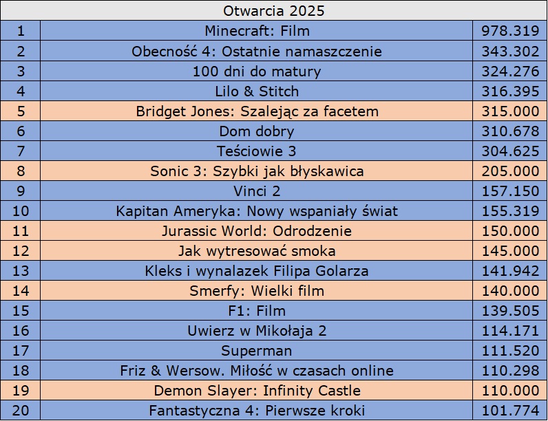 - Dom dobry (2025) – +600 tys. widzów (otwarcie: 310 678)